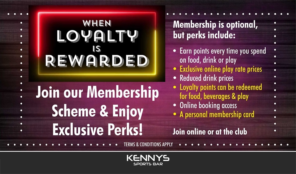 Here at Kennys Sports Bar Member Mondays is officially ON, bringing you exclusive discounts on the games you love.